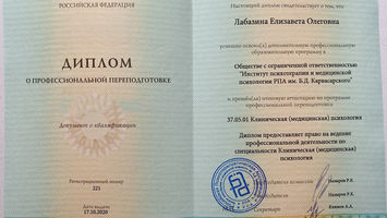 Прошла переквалификацию по клинической (медицинской) психологии, обучилась методу КПТ (когнитивно-поведенческой терапии).
